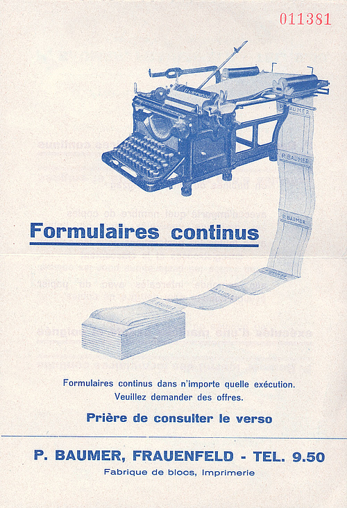 Die Produktion wird erweitert: Baumer steigt in den Endlosformulardruck ein und das Thema Buchdruck gerät zunehmend in den Hintergrund.