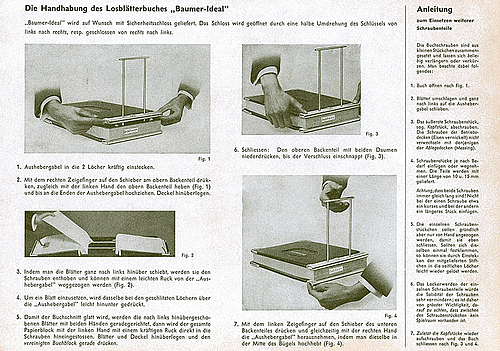 Die Baumer AG entwickelt eine weitere Neuheit – das Losblätterbuch namens Baumer-Ideal – und trägt sie als Patent ein.